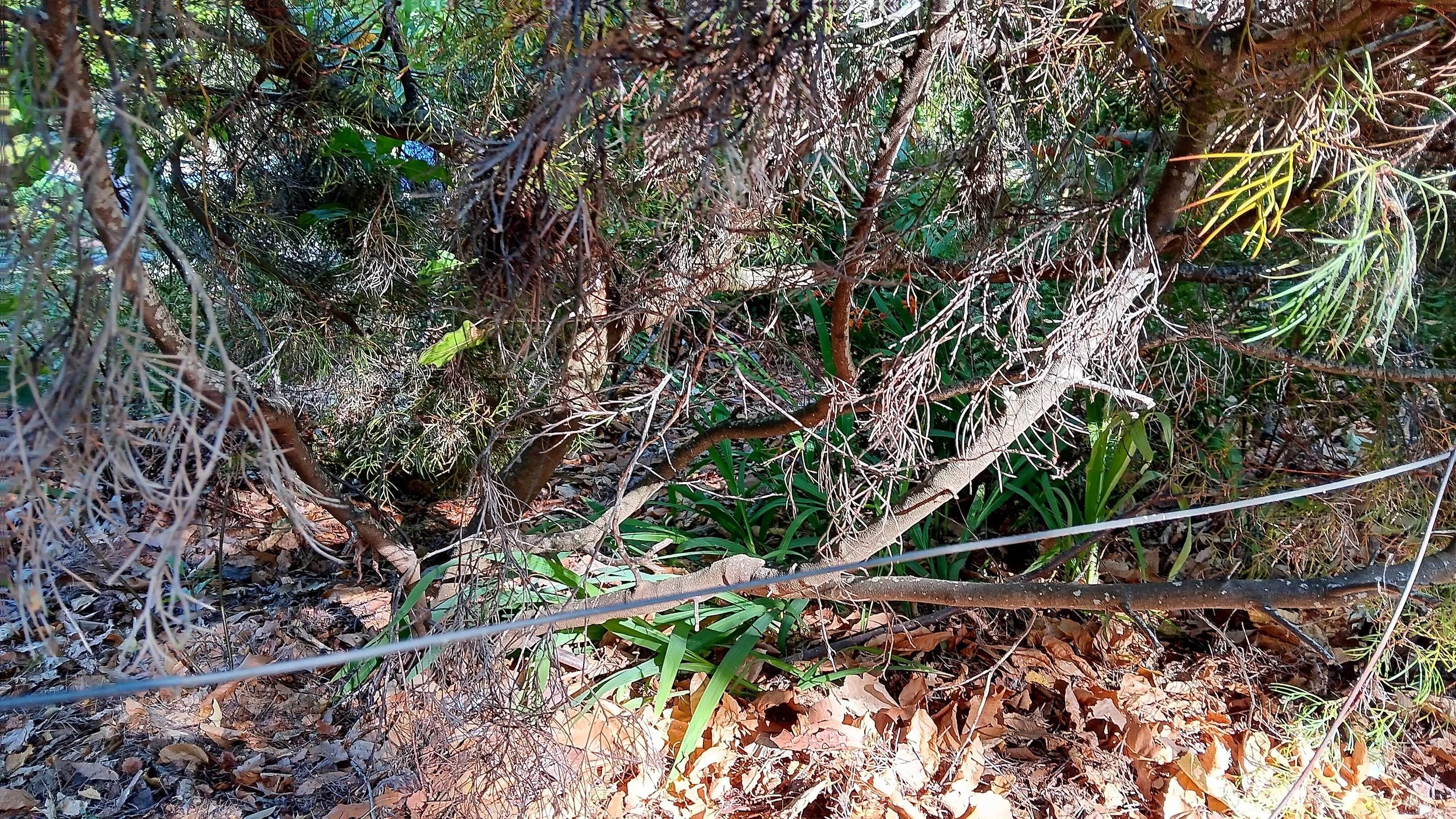 There were dead branches overhanging the path from banksias in this part of the garden too.